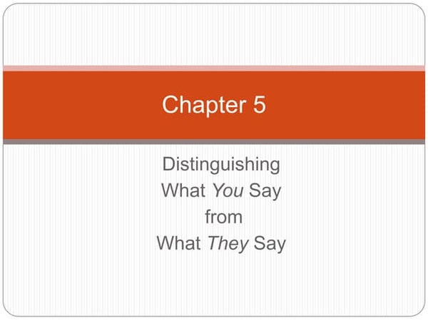 They Say I Say. The beginning of this chapter begins with the question Whats the authors. In this chapter it explains how a person attended an academic.